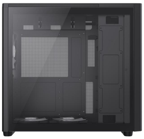 Зручність збірки забезпечується просторим інтер’єром і продуманим кабель менеджментом. На передній панелі розташовані сучасні роз’єми: 2x USB 3.0, Type-C (Gen2) і комбінований аудіороз’єм. Пилозахисні фільтри на верхній, нижній і бічній панелях допомагають підтримувати чистоту всередині.