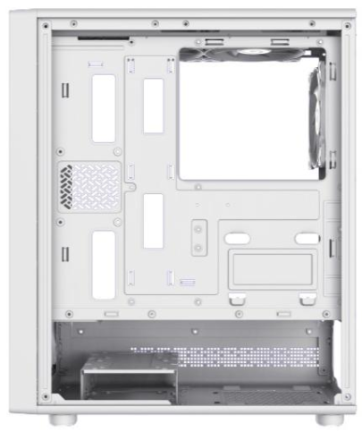 Корпус оснащений шістьма попередньо встановленими 120-мм вентиляторами з ARGB-підсвічуванням, які створюють яскраві світлові ефекти та підтримують синхронізацію з материнськими платами. Він підтримує встановлення радіаторів рідинного охолодження (до 360 мм спереду, 240 зверху або 120 мм ззаду) для максимальної терморегуляції. Сумісний із материнськими платами ATX, Micro-ATX і Mini-ITX, корпус пропонує сім слотів розширення для відеокарт довжиною до 330 мм і кулерів процесора висотою до 155 мм.