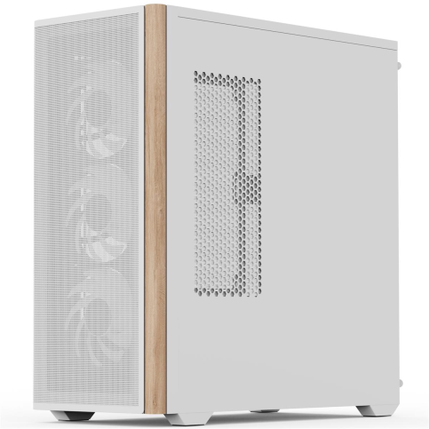 Відчуйте поєднання стилю та функціональності в корпусі AeroCool D501A з модною сітчастою передньою панеллю з дерев’яним акцентом і міцною конструкцією SPCC. Ідеально підходить для потужних конфігурацій, підтримує рідинне охолодження довжиною до 360 мм і графічні процесори довжиною до 400 мм. Витончений і потужний Витончений дизайн можна побачити зсередини та ззовні, при цьому в ньому можна розмістити висококласні компоненти для ігор або інших потреб. Модний і легкий дизайн Сітчаста передня панель не лише додає стильного вигляду, але й забезпечує оптимальну вентиляцію повітря для кращої ефективності охолодження. Елегантно виготовлений Вигнуті краї та повністю сітчаста передня панель підкреслюють орієнтовану на потік повітря конструкцію D501A. Природний дизайн Відкиньтеся на спинку крісла та насолоджуйтеся одним із наших перших корпусів для ПК з дерев’яним акцентом, що має вишуканий вигляд, розроблений для створення природної атмосфери на вашому робочому столі. Великий повітрозабірник Повітрозабірник спеціально розроблений з великими вентиляційними отворами, щоб ваші компоненти залишалися прохолодними. Чудова підтримка охолодження Завдяки 11 слотам для вентиляторів і 360-міліметровій підтримці рідинного охолодження зверху та спереду, D501A надає вам свободу для повного використання потенціалу вашої системи охолодження для досягнення оптимальної продуктивності. Легко керуйте своїми чотирма попередньо встановленими вентиляторами ARGB за допомогою 5-портового концентратора PWM ARGB, що дає вам повний контроль над візуальною естетикою вашої системи.