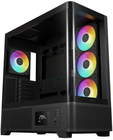 Він оснащений вбудованим дисплеєм для моніторингу системи в реальному часі, який відображає температуру процесора, відеокарти та навколишнього середовища. Користувачі можуть перемикатися між режимами відображення (CPU, GPU, AMB або вимкнення) через панель вводу-виводу. Програмне забезпечення ZEUS CAST дозволяє налаштувати параметри дисплея, забезпечуючи зручний доступ до важливих даних.