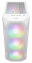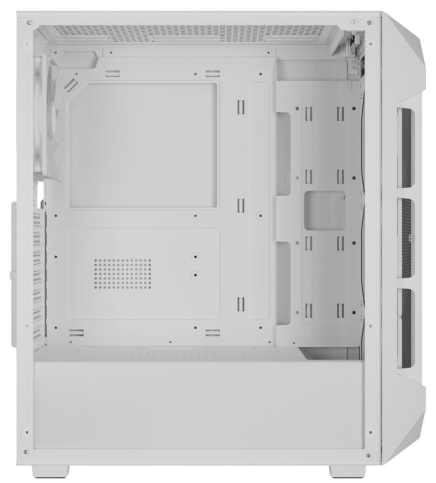 Корпус виконаний у формфакторі Mid-Tower і сумісний із материнськими платами ATX, Micro-ATX і Mini-ITX. Його конструкція виготовлена з міцної сталі SPCC, ABS-пластику та загартованого скла, що забезпечує довговічність і привабливий вигляд. Білий колір із глянцевими акцентами та панорамна бічна панель із 4-мм загартованого скла дозволяють ефектно продемонструвати внутрішні компоненти, підкреслені чотирма попередньо встановленими 120-мм вентиляторами з ARGB-підсвіткою (три спереду, один ззаду). Сітчаста передня панель із магнітним пиловим фільтром гарантує оптимальний повітряний потік, сприяючи ефективному охолодженню.