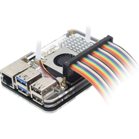 Легкий і стильний корпус з акрилу, що складається з п'яти шарів, розроблений спеціально для Raspberry Pi 5. Забезпечує базовий захист від зовнішніх впливів і зберігає доступ до всіх роз'ємів плати. Дуже добре підходить для ентузіастів, навчальних проектів і домашнього використання.
