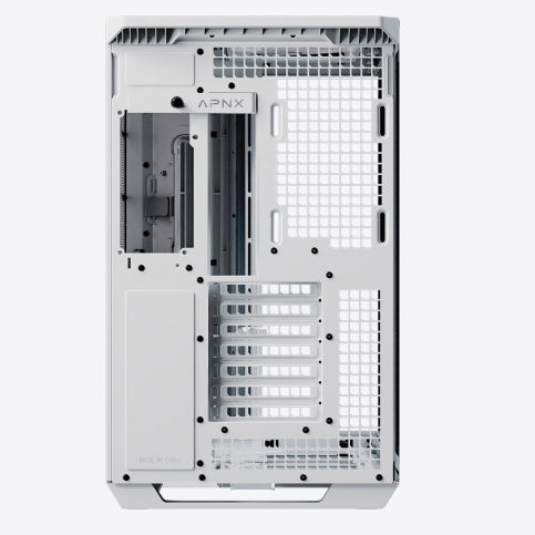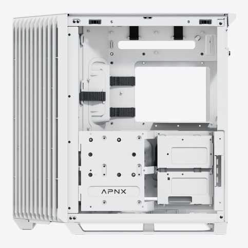 Корпус APNX V1 поєднує в собі точність охолодження, що налаштовується, та унікальну конструкцію повітрозабірника з кутом нахилу 45°, розміщену в гладкій панорамній двокамерній конструкції. Створена для продуктивності та зручності користувача, конструкція механізму пропонує оптимізовані варіанти охолодження для графічного та центрального процесорів, зі швидкознімними охолоджувальними кронштейнами та панелями для легкого доступу, а також акуратну та охайну прокладку кабелів. Завдяки панорамному загартованому склу V1 є ідеальним корпусом для геймерів, творців контенту та збирачів ПК, які шукають продуктивність з індивідуальним дизайном. Унікальна теплова конструкція Інноваційна конструкція двокамерного панорамного корпусу з кутовим всмоктуванням повітря під кутом 45° покращує загальний потік повітря та теплову ефективність як для графічного, так і для центрального процесора, зберігаючи при цьому фірмовий вигляд із повністю загартованого скла. Кутова впускна панель підтримує три 12-сантиметрові, два 14-сантиметрові та до двох 16-сантиметрових вентилятори. Форма відповідає функції Верхня вентиляційна сітка візуалізує унікальний шлях повітряного потоку всередині, інтуїтивно зрозуміло демонструючи динаміку охолодження кутового входу та покращуючи верхній потік повітря. Механізм регулювання положення материнської плати V1 пропонує два положення для встановлення материнської плати, щоб забезпечити більше місця для покращення повітряного потоку та продуктивності охолодження графічного процесора або для зручного встановлення товстіших радіаторів/вентиляторів для пріоритетного охолодження центрального процесора. Контролюйте своє охолодження Насолоджуйтеся широким спектром потенційних конфігурацій охолодження завдяки десяти слотам для вентиляторів, а також підтримці рідинного охолодження до 360 мм і процесорних кулерів до 170 мм. Виразник стилю Доступний у чорному, білому та чорно-білому кольорах. Виберіть вигляд, який доповнює ваш стиль. Конструктивна підтримка графічного процесора Кріплення для графічного процесора з регульованою висотою та кутом нахилу входить до комплекту, тому ваша важка відеокарта (до 395 мм завдовжки) буде в надійних руках. Акуратна та охайна система прокладання кабелів V1 розроблений для інтуїтивно зрозумілого управління кабелями. Прозорі кабельні канали зі стяжками на липучках та гумовими доріжками на бічній панелі забезпечать ідеальний зовнішній вигляд вашої збірки.