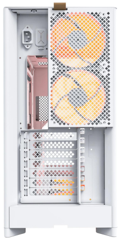 HS02 Pro також реалізує природне охолодження в димохідному стилі — повітря надходить знизу і виходить через верх, що створює оптимальний вертикальний потік для розсіювання тепла. У цьому допомагають два попередньо встановлені задні вентилятори, які значно покращують тепловідвід. Завдяки зовнішньому кріпленню задніх вентиляторів і розширеній підтримці охолоджувальних рішень, корпус підтримує радіатори шириною до 123 мм у верхній частині, що відкриває широкі можливості для встановлення СВО.