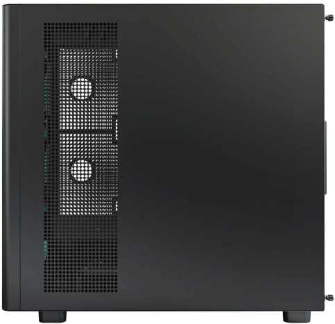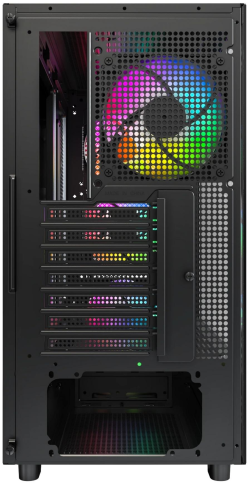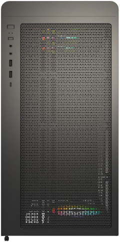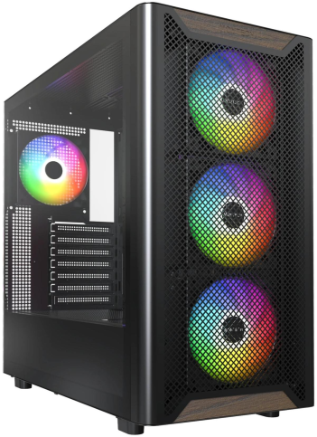 Естетика корпусу вражає завдяки передній панелі чорного кольору, що додає універсальності. Загартована скляна бічна панель підкреслює внутрішні компоненти, забезпечуючи панорамний огляд. Компактний, але просторий дизайн дозволяє легко розмістити потужне обладнання.