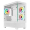 Дизайн корпусу вирізняється ARGB-підсвічуванням і скляною боковою панеллю, що дозволяє демонструвати внутрішні компоненти та створює ефектне підсвічування в поєднанні з трьома попередньо встановленими вентиляторами. Два з них розміщено на бічній панелі, один — на задній, що формує стабільний потік повітря та забезпечує надійне охолодження навіть під час інтенсивної роботи системи.