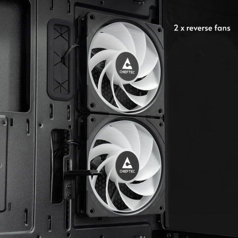 Інженерні рішення, прийняті під час створення корпусу Chieftec Gaming GP-01B (GP-01B-OP) посприяли можливості установки в нього материнських плат форм-факторів mITX, mATX, ATX, процесорних кулерів, в висоту не більше 160 мм і відеокарт, якщо їх довжина не перевищує 430 мм. Природно розробники не забули і про накопичувачах, під них реалізовано 4 осередки для 3,5 "пристроїв і 2 під 2,5", а щодо обдування, то внутрішній простір дозволить розвернутися 1 x 180 мм вентилятору, або 280мм радіатора СВО, або 3 x 120мм, або 2 x 140 мм вентиляторів на передній, 2 x 120 мм або 2 x 140 мм вентиляторів на верхній або 280 мм радіатора СВО, 1 x 120 мм на задній панелі, при тому, що 3 х 120 мм входять у вартість моделі. Як підсумок, корпус Chieftec Gaming GP-01B (GP-01B-OP) вийшов в розмірах 572 x 210 x 520 мм з вагою 8,5 кг і 2 x USB3.0 (USB3.1 Gen 1), 2x USB2.0, Mic-in, Audio-out (AZALIA / HD-Audio) на зовнішній панелі інтерфейсів.