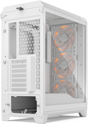 Для охолодження передбачена підтримка радіаторів до 360 мм спереду та 280 мм зверху з легко знімними кронштейнами. Зручність складання забезпечують знімні панелі та продумана система організації кабелів із кабельним каналом і новими фіксаторами. На верхній панелі розташований сучасний набір портів: USB-C (20 Гбіт/с), два USB-A та комбінований аудіороз’єм. Meshify 3 RGB White TG Clear Tint — це вибір для тих, хто цінує стиль, функціональність і легкість у збірці.