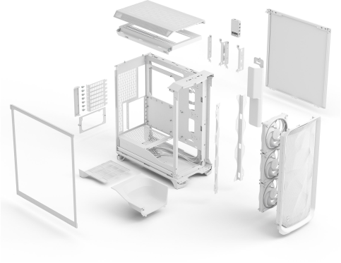 Корпус оснащений сучасними інтерфейсами для підключення периферії. Інноваційна система освітлення ARGBGen 2 із підтримкою Adjust Pro Hub дає змогу налаштовувати анімовані світлові ефекти через веббраузер без додаткового ПЗ, створюючи унікальну атмосферу. Зручність складання забезпечують знімні панелі, кабельна кришка та органайзери для кабелів, що створюють охайний вигляд. Міцна конструкція з бічною панеллю із загартованого скла та пиловий фільтр для блоку живлення підвищують довговічність.