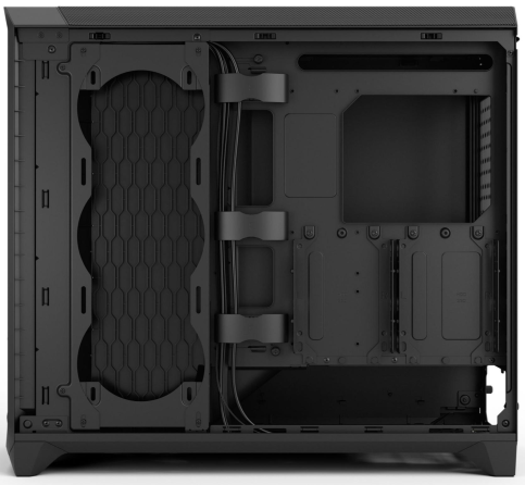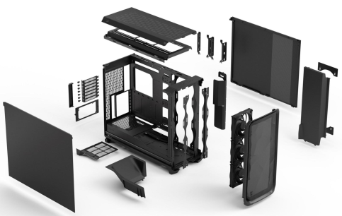 Корпус дозволяє легко розмістити відеокарти довжиною до 512 мм і материнські плати E-ATX шириною до 330 мм, що робить його чудовим варіантом для геймерських і професійних збірок. Покращена вентиляція та вільний повітропотік допомагають ефективно охолоджувати комплектуючі навіть при інтенсивному навантаженні. В комплекті постачаються три вентилятори Fractal Momentum 14 з лопатями з рідкокристалічного полімеру (LCP) та гідродинамічними підшипниками FDB, що забезпечують сильний повітряний потік і при цьому зберігають низький рівень шуму.