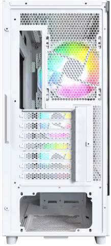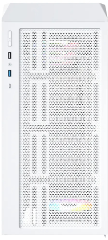 Панель вводу-виводу включає 1xUSB 2.0, 1xUSB 3.0 і 1xUSB Type-C для швидкого підключення сучасних пристроїв, а також комбінований аудіороз’єм 3.5 мм. Скляна бічна панель із гартованого скла (4 мм) демонструє внутрішнє складання з ARGB-підсвічуванням, яке можна налаштувати через материнську плату (ARGB-сумісність). Комплектація включає вентилятори, гвинти та документацію, але блок живлення (NoPSU) необхідно купувати окремо.
