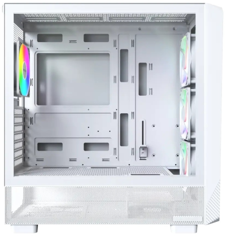 Montech X5 вирізняється високою продуктивністю охолодження завдяки чотирьом попередньо встановленим вентиляторам: 3x140 мм ARGB спереду для потужного вхідного потоку повітря та 1x120 мм ARGB ззаду для виведення гарячого повітря. Корпус підтримує встановлення радіаторів рідинного охолодження до 360 мм спереду і зверху та 120 мм ззаду, що робить його ідеальним для систем із високим тепловиділенням. Сітчаста передня панель із магнітним пиловим фільтром забезпечує оптимальну вентиляцію, мінімізуючи накопичення пилу.
