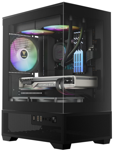 Gamdias Aura GC9M Elite — це компактний micro-tower корпус, створений для поціновувачів естетики та ефективного повітряного потоку. Його панорамний дизайн із двома панелями із загартованого скла — передньою та бічною — відкриває чудовий огляд на внутрішні компоненти та підкреслює яскраву ARGB-підсвітку, роблячи вашу збірку візуально привабливою з будь-якого ракурсу.