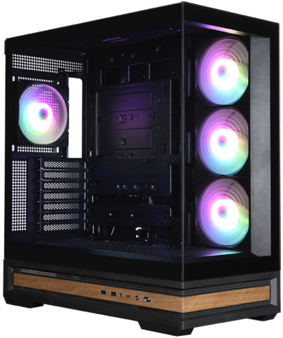 Ця модель не включає блок живлення, дозволяючи обрати оптимальний варіант для вашої конфігурації, а її ключова особливість — дерев'яна обробка, що обгортає нижню частину корпусу, додаючи тепла та елегантності традиційному геймерському стилю, доступна в чорному та білому кольорах для гармонії з будь-яким інтер'єром.