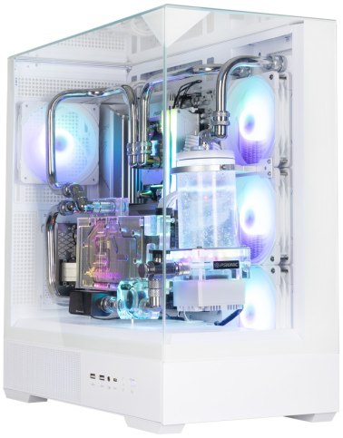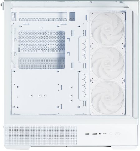 Міцнатрикутна опорна конструкція витримує до 35 кг, гарантуючи надійність і стабільність всіх скляних панелей. Для оптимального охолодження корпус оснащено бічною панеллю з повної сітки, яка дозволяє ефективно направляти повітря до материнської плати та інших компонентів. Додатково можна встановити вентилятори: бічна сторона – 120/240/360 мм, задня – 120 мм, а для рідинного охолодження доступна знімна розширювальна кришка для монтажу 360-мм радіатора.