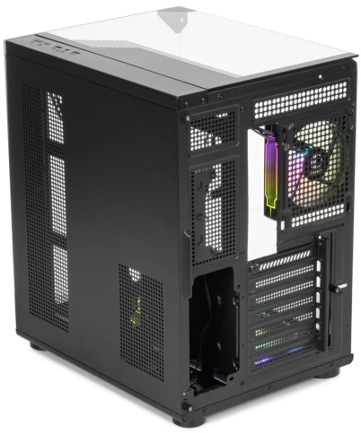 Для компонентів передбачено місце для відеокарт довжиною до 330 мм, процесорних кулерів висотою до 155 мм. Є 7 слотів розширення для встановлення додаткових карт. Зберігання даних підтримується через 2x3.5" HDD і 2x2.5" SSD відсіки, розташовані в нижній частині для оптимального кабель-менеджменту. Відсутність блока живлення дозволяє користувачу вибрати БЖ відповідно до потреб системи, наприклад.