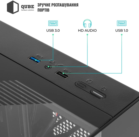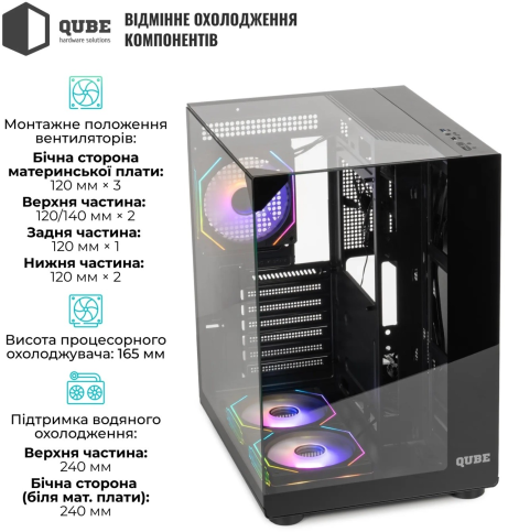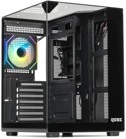 Qube Aquarium — це стильний ATX-корпус із прозорою бічною панеллю, гарною вентиляцією та підтримкою потужних компонентів, ідеальний для створення ефектних геймерських ПК.