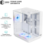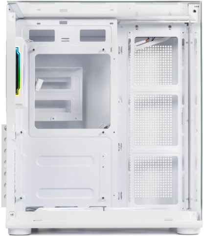 Корпус виконаний у формфакторі Mid-Tower і сумісний із материнськими платами ATX, Micro-ATX, Mini-ITX. Конструкція виготовлена зі сталі SPCC і гартованого скла, що забезпечує міцність і візуальну привабливість. Прозора бічна панель дозволяє демонструвати компоненти з RGB-підсвіткою, створюючи ефект "акваріума". Розміри корпусу складають приблизно 339x275x392 мм, що робить його компактним для ATX-формату, але достатньо просторим для потужних збірок.