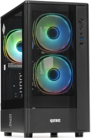 Корпус QUBE GEON ARGB Black – це компактне і сучасне рішення для збірки ПК формату mATX, яке поєднує стильний дизайн, практичність і надійність. Його конструкція виконана з міцної сталі товщиною 0,35 мм, а фронтальна панель з пластику з металевою решіткою забезпечує додатковий приплив повітря та покращене охолодження. Ліва бічна панель із загартованого скла з розсувним механізмом дозволяє легко отримати доступ до комплектувальних і одночасно підкреслює зовнішній вигляд системи з підсвічуванням. Права панель металева, що додає жорсткості корпусу. При габаритах 325×197×387 мм корпус залишається компактним, зберігаючи всі ключові можливості для збірки продуктивної системи.