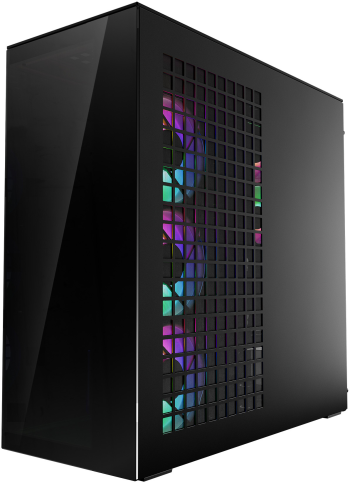 Корпус оснащений п’ятьма попередньо встановленими вентиляторами: двома P12 Pro A-RGB (задня панель, 600–3000 об/хв, потік повітря 77 cfm) і трьома P14 Pro Reverse A-RGB (бічна панель, 400–2650 об/хв, потік повітря 98 cfm). Вони забезпечують ефективне охолодження високопродуктивних компонентів завдяки оптимізованій конструкції з високим повітряним потоком. Корпус підтримує вентилятори 120 мм або 140 мм зверху, збоку та ззаду, а також радіатори розміром 240, 280, 360 або 420 мм для систем водяного охолодження.