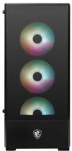 Для зручного підключення пристроїв передбачено порти USB 3.2 Gen 1 Type-A, а також аудіо- та мікрофонні роз’єми на верхній панелі. Кнопка Insta-Light Loop дозволяє швидко перемикати ефекти підсвітки вентиляторів і передньої LED-смужки, які сумісні з MSI Mystic Light для повної кастомізації. Корпус пропонує достатньо простору для компонентів: графічні карти до 330 мм, процесорні кулери до 160 мм і блоки живлення ATX до 200 мм.