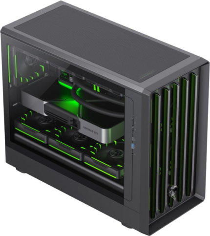 - Виняткова підтримка обладнання – сумісність з материнськими платами M-ATX, 420-мм відеокартами (підготовленими для Nvidia серії 50), 240-мм блоками живлення ATX, 175-мм повітряними кулерами та 360-мм радіаторами для максимальної універсальності.