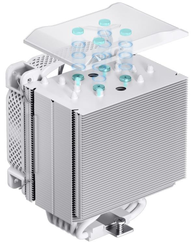 Виріб має алюмінієву конструкцію та оснащений контактними пластинами із нікельованої міді, які з'єднується шістьма тепловими трубками діаметром 6 мм, де крайня трубка зміщена для кращої сумісності з модулями оперативної пам'яті. Підключається пристрій за допомогою конектора 4 Pin. Підійде для всіх вказаних сокетів.