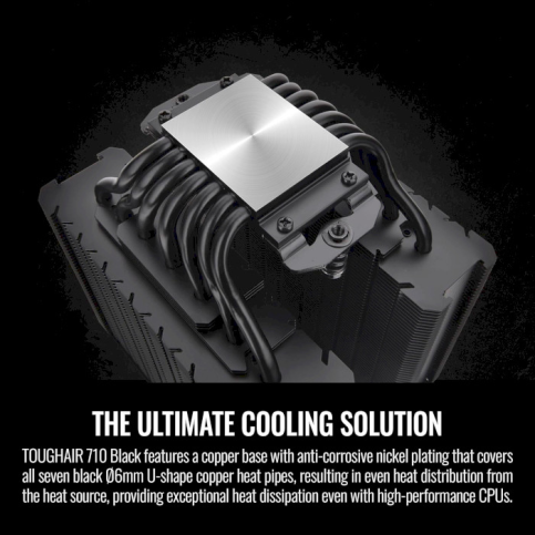 Toughair 710 має мідну основу з антикорозійним нікелевим покриттям, яке покриває всі сім чорних мідних теплових трубок U-подібної форми Ø6 мм, що забезпечує рівномірний розподіл тепла від джерела тепла, забезпечуючи виняткове розсіювання тепла навіть під час використання високопродуктивних процесорів.