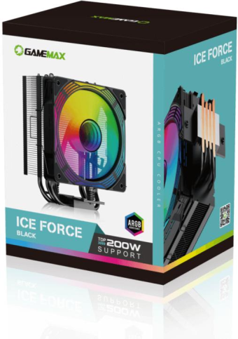 Ice Force — надійний кулер процесора від GameMax, оснащений чотирма тепловими трубками, підтримує процесори Intel Gen 12-13 та останню модель AMD. Має стильний дизайн у чорному кольорі та підтримує яскраві світлові ефекти ARGB. Він забезпечить максимальну теплову потужність процесора, з якою повинна справлятися система охолодження.