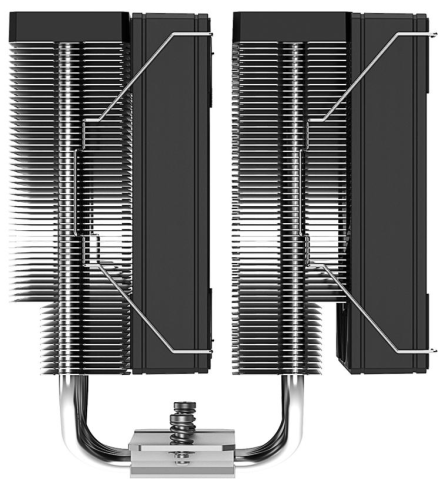 Мідна основа кулера припаяна до теплових трубок, що забезпечує чудовий тепловий інтерфейс, стійкий до тривалого термоциклування. Завдяки комбінації порошкових і пазових теплових трубок, кулер ефективно працює в будь-якому положенні корпусу — вертикальному чи горизонтальному, демонструючи високу продуктивність навіть для процесорів з високим TDP.