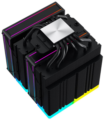 Два вентилятори AF-127-ARGB забезпечують надзвичайну ефективність охолодження завдяки вдосконаленій технології теплових трубок. Естетична привабливість досягається завдяки повністю чорному дизайну з ARGB-підсвічуванням по краях радіатора та вентиляторів.