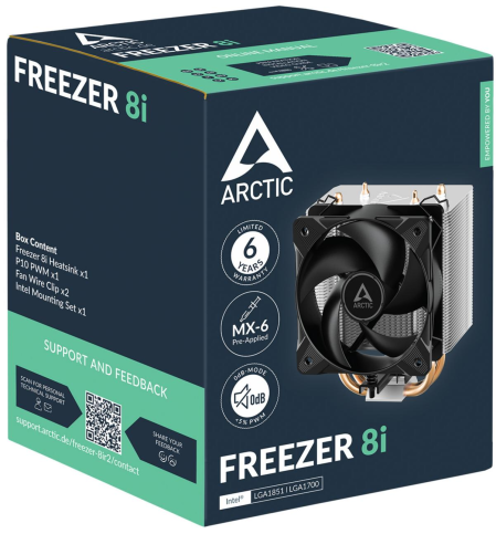 Кулер Arctic Freezer 8i для охолодження Intel-процесорів поєднує високу продуктивність та ідеально підходить для компактних систем, забезпечуючи надійне охолодження без зайвого шуму.