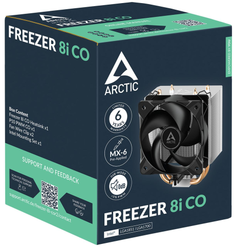 Кулер Arctic Freezer 8i CO для охолодження Intel-процесорів поєднує високу продуктивність та ідеально підходить для компактних систем, забезпечуючи надійне охолодження без зайвого шуму.