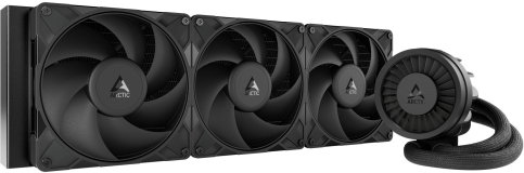 Радіатор Arctic Liquid Freezer III Pro 420 виготовлений з алюмінію, має довжину 420 мм та товщину 38 мм, що дозволяє вміщувати більший об’єм рідини та ефективно розсіювати тепло. Три вентилятори P14 Pro з гідродинамічним підшипником працюють у діапазоні 400–2500 об/хв, забезпечують повітряний потік до 110 CFM і статичний тиск 5.2 мм H₂O, поєднуючи високу продуктивність і низький рівень шуму.