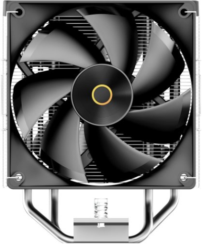 Дизайн кулера втілює мінімалізм і надійність: округла верхня кришка та рівномірно складений масив ребер створюють чистий, солідний вигляд. Додатковий 9-лопатевий вентилятор на задній частині посилює потік повітря, а якісні FDB-підшипники та демпферні прокладки в кутах гарантують тиху роботу на рівні ≤29 дБ(А) при швидкості від 500 до 2000 об/хв.
