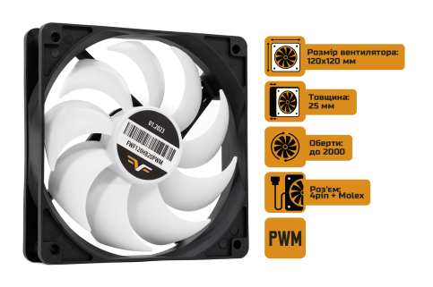 Frime (FWF120HB20PWM) 120x120x25мм, PWM Black/White