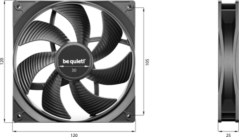 Pure Wings 3 120 мм PWM розрахований на тривалий термін служби. Завдяки перевіреному часом підшипнику ковзання з гвинтовою нарізкою термін експлуатації становить до 80 000 годин.