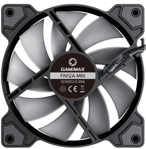 Gamemax FN12A-M6I — кулер для корпусу. Він покликаний видувати гаряче повітря, тим самим охолоджуючи внутрішні компоненти ПК. Виріб зі стильним фіксованим світлодіодним освітленням RGB додає індивідуальність збірці. Працює зі швидкістю 1200 об/хв., оснащується вигнутими лопатями для підвищення тиску повітря, максимізації ефективності охолодження і мінімізації опору повітря і шуму.
