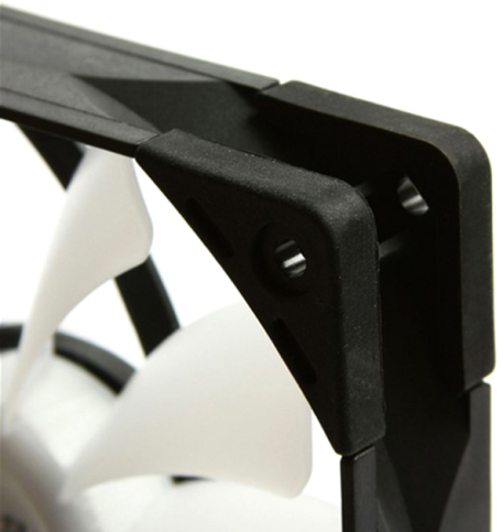 Серія вентиляторів Kaze Flex 120 PWM обладнана амортизувальними гумовими накладками по кутах, які ефективно усувають можливі вібрації та забезпечують малошумну роботу.