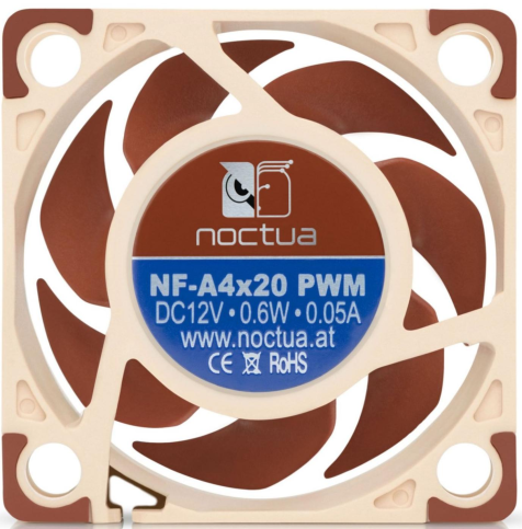 Кулер Noctua NF-A4x20 PWM — це високоякісний вентилятор преміум-класу розміром 40x20 мм, що вирізняється тихою роботою завдяки вдосконаленим аеродинамічним рішенням, таким як канали прискорення потоку та рамка Noctua AAO. Він оснащений ШІМ-керуванням через 4-контактний роз'єм, що забезпечує автоматичне регулювання швидкості обертання.