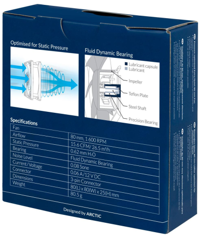 Під час розробки нового кулера Arctic P8 Silent особливий акцент був зроблений на сфокусованому потоці повітря та, таким чином, на високому статичному тиску. Вентилятор гарантує надзвичайно ефективне охолодження навіть при підвищеному опорі повітря.