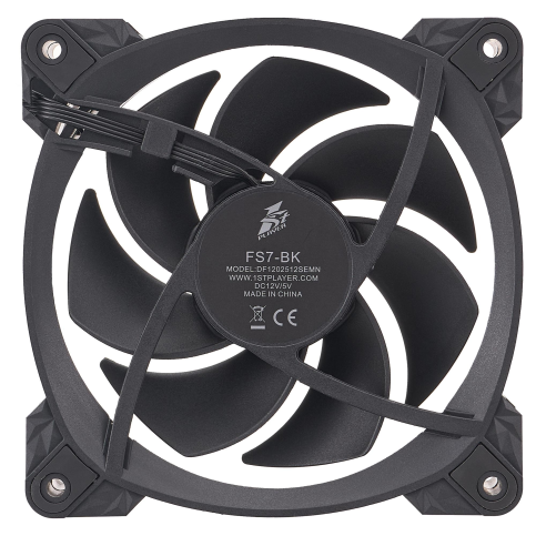 1stPlayer FS7 - 9-лопатевий вентилятор, який забезпечує тиху роботу. Конструктивно закладена антивібраційна система кріплення для зниження шуму. Вентилятор підтримує синхронізацію ARGB для узгоджених світлових ефектів. Особливістю 1stPlayer FS7 є унікальна спіральна текстурована рамка з підсвіткою.