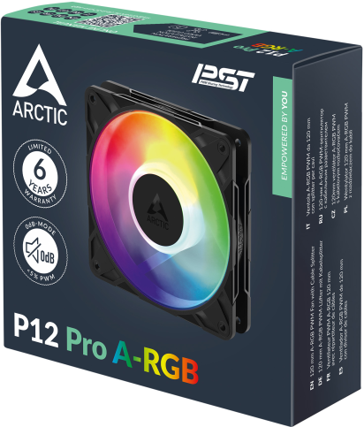 Arctic P12 Pro ARGB— це потужний і тихий кулер із PWM, PST і настроюваним ARGB-підсвічуванням, ідеальний для ефективного охолодження та стильного вигляду.