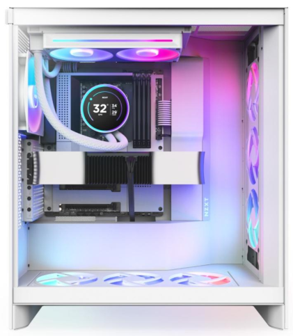 RGB-перстень навколо дисплея створює настроювані світлові ефекти, що синхронізуються з екраном або іншими RGB-пристроями. Вентилятори RGB Core з одинарною рамою забезпечують потужний повітряний потік і яскраве підсвічування, спрощуючи підключення завдяки меншій кількості кабелів.