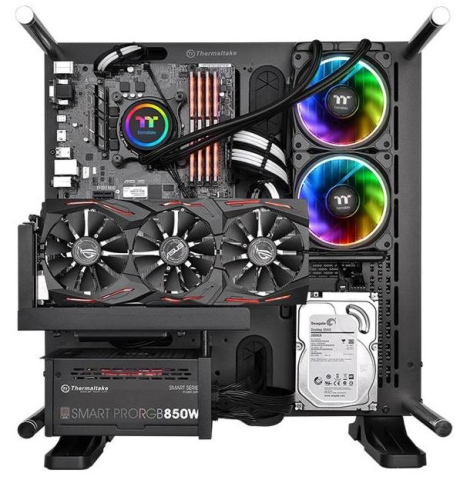 Система водяного охолодження для процесора від компанії Thermaltake. Вона складається із двох вентиляторів оснащених RGB-підсвіткою. Кольорова гама складає 16.8 млн. кольорів. Вибрати можна будь-який із них. Кожен зможе налаштувати її під себе. Робити це досить просто, завдяки контролеру.