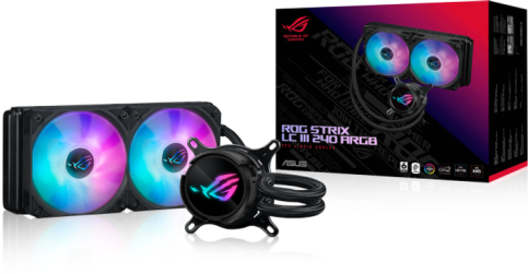 ROG Strix LC III 240 ARGBКомплексна процесорна система рідинного охолодження ROG Strix LC III ARGB з водоблоком, що обертається на 360 градусів, новою помпою Asetek Gen7 v2 та вентиляторами ROG ARGB преміумкласу з підтримкою більш ніж 10 світлових ефектів Aura.