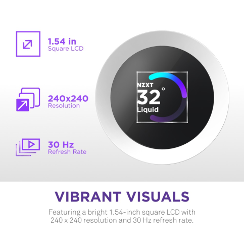 Kraken Plus 360 RGB оснащена 360 мм алюмінієвим радіатором і трьома 120 мм вентиляторами, які забезпечують потужний повітряний потік (75,05 CFM) при низькому рівні шуму (31.9 дБ). Вентилятори з гідродинамічними підшипниками та ШІМ-регулюванням (500–2400 об/хв) дозволяють балансувати між тихою роботою та максимальним охолодженням. Помпа зі швидкістю до 2800 об/хв гарантує ефективну циркуляцію рідини, підтримуючи стабільно низькі температури навіть для топових процесорів Intel і AMD. Унікальний 1.54-дюймовий РК-дисплей (роздільна здатність 240x240, 30 Гц) відображає температуру, навантаження CPU або кастомні GIF-зображення, додаючи індивідуальності вашій збірці. Програмне забезпечення NZXT CAM дозволяє точно налаштувати швидкість помпи, вентиляторів і RGB-підсвічування, синхронізуючи його з іншими сумісними пристроями.