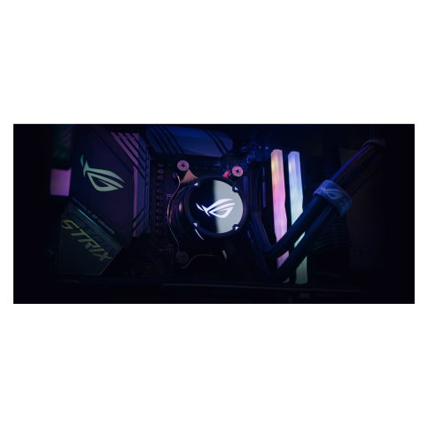 Комплексна система водяного охолодження процесора з 120-міліметровим вентилятором ROG на радіаторі з підтримкою RGB-підсвічування Aura Sync.