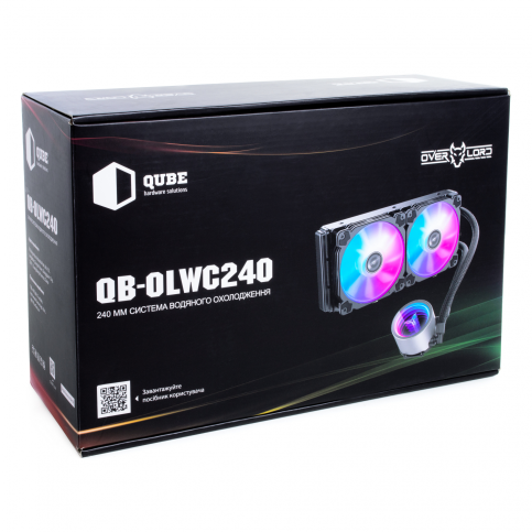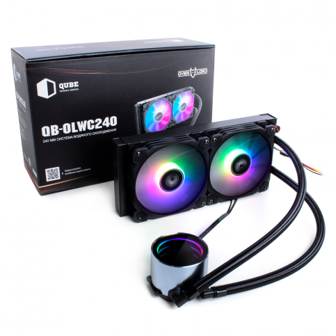 QUBE QB-OLWC240ARGB - комплексна система водяного охолодження процесора з двосекційним радіатором і двома 120-мм вентиляторами з кольоровим RGB-підсвічуванням. Призначена для ефективного відведення тепла від компонента та забезпечення стабільної роботи системи. Здатна задовольнити потреби просунутих користувачів, яким потрібна більша потужність охолодження.