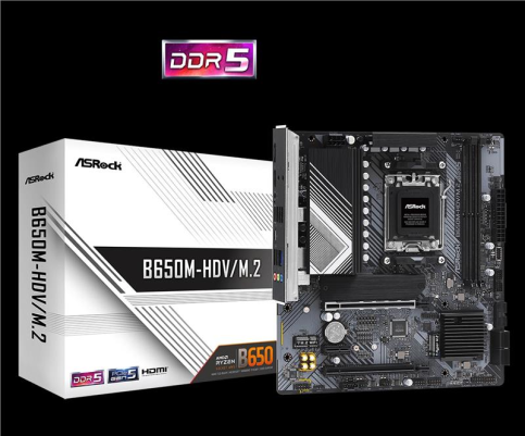 AsRock B650M-HDV/M.2 - материнська Micro ATX плата на базі чіпсета AMD B650. Виконана в оригінальному дизайні, сумісна з процесорами AMD Ryzen 7000. Підтримує 2 слоти для оперативної пам'яті DDR5 типу з підтримкою до 64 ГБ.